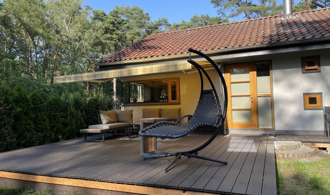 Oder besser: die Terrasse. Hier könnt ihr open Air umgeben vom Wald euren Spaß haben. Ob ihr nun in Latex ein Sonnenbad nehmen wollt, eine Session unter freiem Himmel oder einfach mal hemmungslos mit Natursekt anstoßen möchtet – hier seid ihr unsichtbar, jedoch nicht unüberhörbar,. Haltet also den Lärmpegel lieber etwas niedrig (damit Bambi keine heißen Ohren bekommt) und dafür das Treiben umso bunter. Auch für romantische Nächte ist die Terrasse ein perfekter Ort!