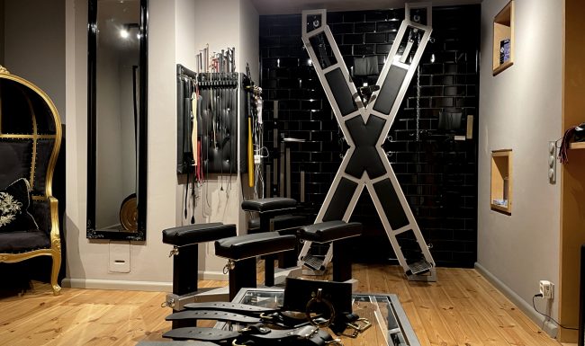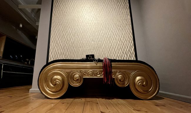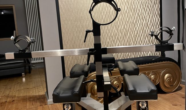 Zentrale Möbel sind hier das System-Andreaskreuz und der System-Bock. Beide sind mit diversem Zubehör erweiterbar und verstellbar (siehe weiter unten). Doch es gibt noch mehr: den imposanten und doch gemütlichen Thron sowie eine Bank. Ob zum Sitzen oder dem Bearbeiten eurer Subs entscheidet ihr.